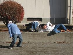 子どもたちは、氷を見つけると、触ったり割ったり遊び放題です。