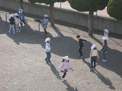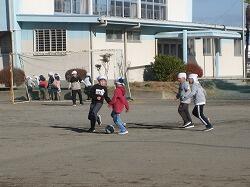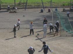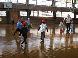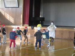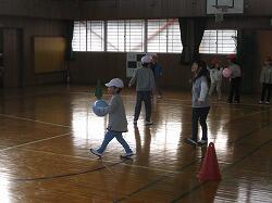 1年生が、体育館で「お楽しみ会:ドッジボール」をしていました。