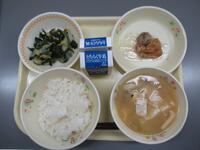 今日の給食の「きりたんぽ汁」は、秋田県の郷土料理の「きりたんぽ鍋」をイメージしています