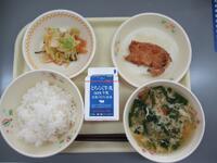 ごはん 牛乳 ヤムニョムチキン やみつきキャベツ わかめスープ