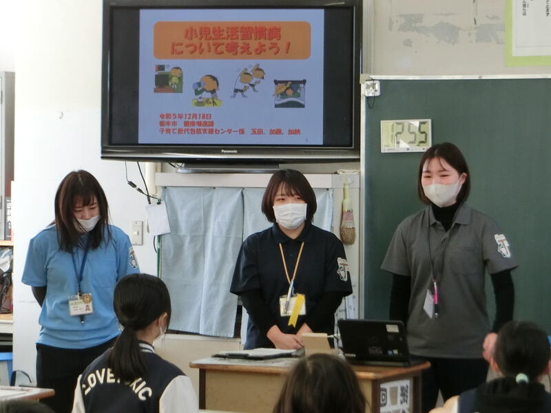 今日は冬休みの健康な過ごし方について栄養士と養護教諭から話しました