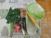 ベーコンと小松菜の炒め物で、野菜もしっかり食べていました