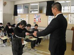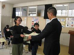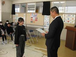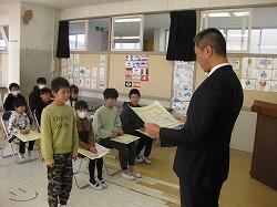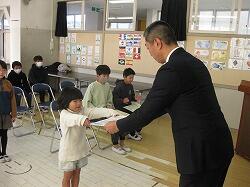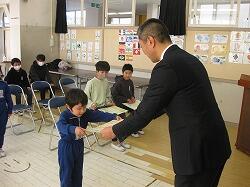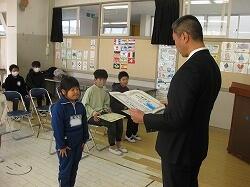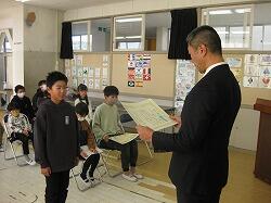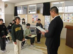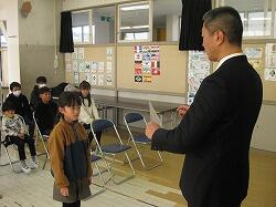 2学期の始業式に話した「チャレンジ」について、「できた」「わかった」「がんばった」ことを確認した後、冬休みならではの行事や心掛けてほしいこと3つの話がありました。「体調管理」「安全な生活」「新たな決意」として、家庭の事情に併せていろいろな体験をしてほしいと話していました