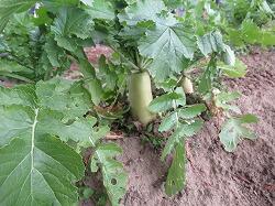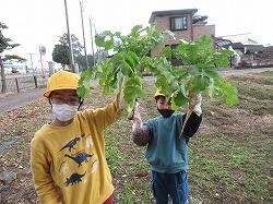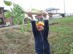 青々とした見事な葉に、太くなった白大根。子どもたちは大喜びで引き抜きました。