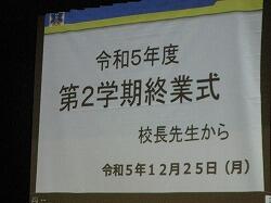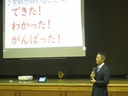 花丸2学期の始業式に話した「チャレンジ」について、「できた」「わかった」「がんばった」ことを確認した後、冬休みならではの行事や心掛けてほしいこと3つの話がありました。「体調管理」「安全な生活」「新たな決意」として、家庭の事情に併せていろいろな体験をしてほしいと話していました期待・ワクワク
