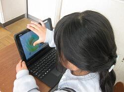 1組 学活:タブレットで、お絵かきやスタンプの練習