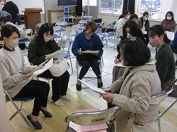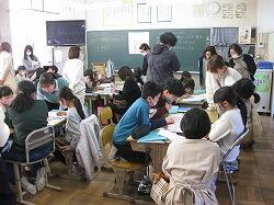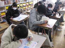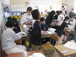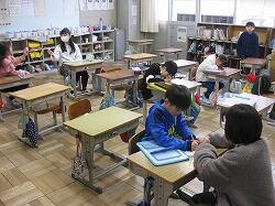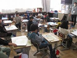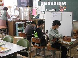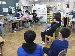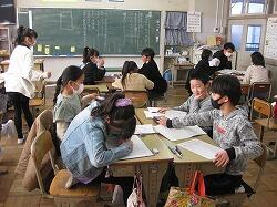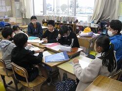 3年生は、国語です。学校の自慢は何か、グループで話し合っていました。