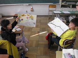 紙芝居の絵の完成度が高くて、びっくり!!自信たっぷりで、近くの席の友達と見せ合いながら練習に励んでいました