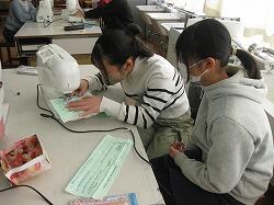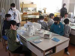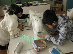 5年生の家庭科では、ミシンを使ってエプロンづくりをします。