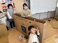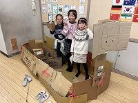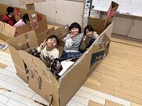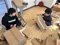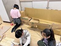と、思っていましたが、だんだんと作りたいものの形が見えてきたのか、後半は思い思いに段ボールをつなげていきます。