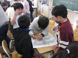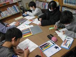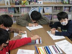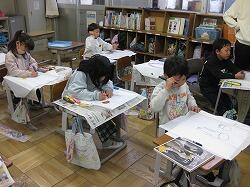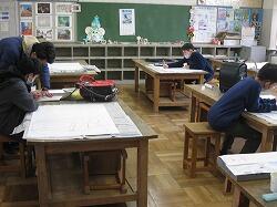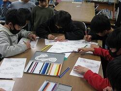 下絵を本番用紙に描くのですが、手に汗をかいている子やペンが震えてしまっている子がいて、とても緊張している様子が分かりました