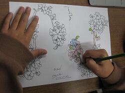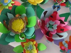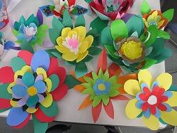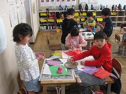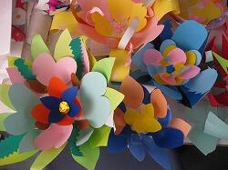卒業式で廊下を花でいっぱいにするための絵を描いたり、カッターナイフを使って立体工作をしたりしていました
