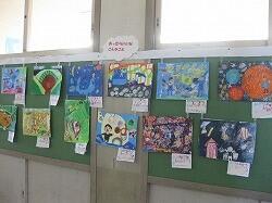図工の時間に和紙に描いた絵に、自分の゛座右の銘”を書き加えて仕上げます