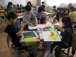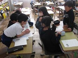 国語の単元「学校のじまん」で、西方小の良いところをみんなで見つけています。
