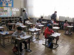 栃木市で元校長先生をなさっていたボランティアティーチャーをお招きして、6年生が書道のご指導をしていただきました