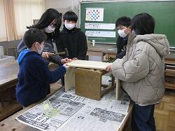 6年生は、学年PTA行事で卒業式に付けるコサージュを作り、図工の時間には、卒業記念のオルゴールを作っています