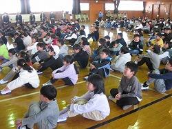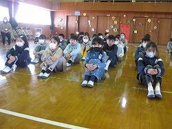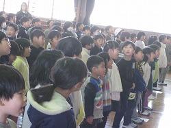 星修了式の意味や今年度がんばってきたことを話しました。そして、春休みを安全に過ごしてほしいと伝えました笑う