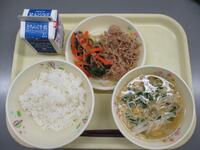 ごはん 牛乳 セルフビビンバの具 ナムル 中華風卵スープ