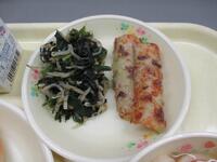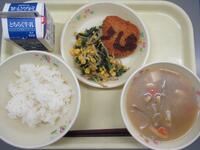 ごはん 牛乳 鮭フライ 小松菜の醤油和え 味噌けんちん汁