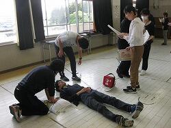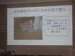 スライドを使って説明を聞いた後、職員が実践演習を行いました。
