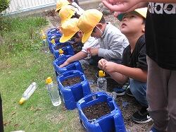 指で開けた穴に、種をそっと置き、そっと土をかけていましたよ