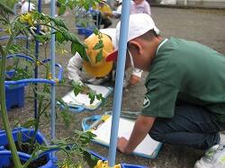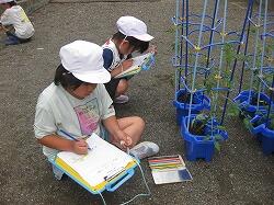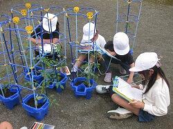 葉を見ながら、アサガオの葉の形や茎(つる)の違いなどに気づいている子がいました既習学習が生かされていますね