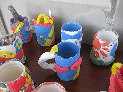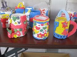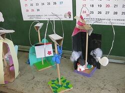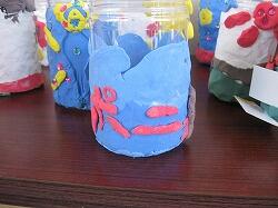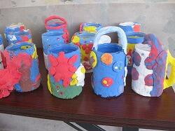 3年生が、色粘土とプラスチック筒を使って、小物入れを作りました