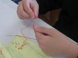 針と練習布の持ち方や玉止めが緩まないコツなど、細やかにご指導くださいました