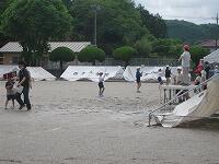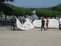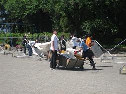 テントの立ち上げは、児童ではできないため、PTA執行部役員の皆様が手伝いに来てくださいましたサッカーゴールも、役員さんがあっという間に移動してくださいました。