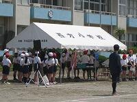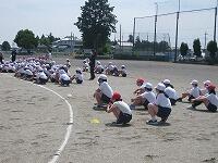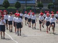 2時間目には、1・2年生が徒競走(かけっこ)の練習をしていました。