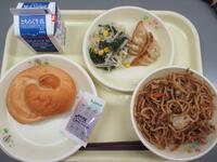 バターロール 牛乳 ちくわの新緑揚げ きつねうどん 礒香和え