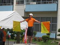 特に、演技開始の合図は、準備係、招集係、審判係、演技担当順に旗を揚げて合図を出します。その合図をもとに、放送係が演技開始のコールをすることになっています。