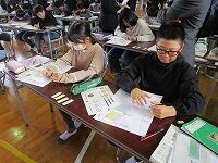 外国語で他県の紹介文を考えたり、家庭科のエプロンの仕上げやボランティアさんへのお礼の手紙を書いたりしていました