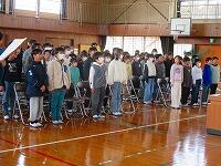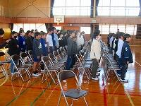 体育館では、卒業生の入退場のタイミングや別れの言葉の間の確認をしました