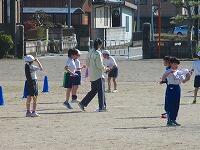 校庭では、2年生が、元気に縄跳びをしていました。