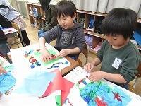 ふわっと貼り付けたり、ぎゅっと固めたりして、色とりどりで賑やかな作品に仕上がりました