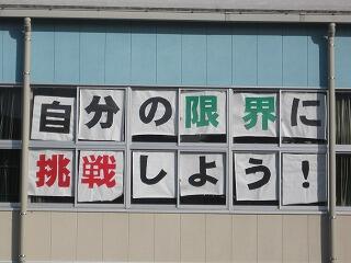 来週の11/25(水)(雨天時26(木)に順延)に迫った持久走大会に向けて、児童たちが考えた今年度スローガンが体育館校庭側の窓に掲示されました。