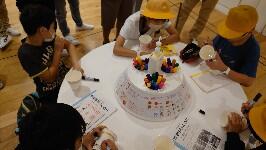 事前に下書きしたデザインをもとに、容器にイラストを書き、その後、味と具材を好きに選びました。