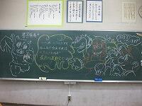 運動会向けて、担任が児童にメッセージを黒板に描いていました