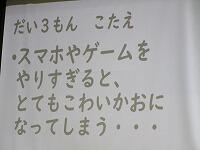 夏休みを安全にすごす3つの決まりを、クイズ形式で指導しましたひと休み