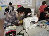 「見て見て~!!こんなに速く縫えるようになったんです!」「すごいね~。僕はまだ心配だから、ゆっくり縫うよ。」「布が厚くなっているところは、スピードをゆっくりにするといいよ。」「ここを見て縫うと、曲がらないで縫えるんだって。さっき教えてもらったよ。」・・・など、子どもたち同士で励まし合ったりアドバイスし合ったりして、学習を深めています。