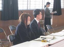 担任からお祝いのメッセージがあり、卒業生も真剣なまなざしで聞いていましたよ。