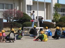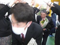校庭にて、4・5年生と教職員が、卒業生の見送りをしました。