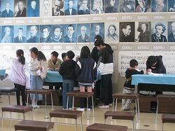 作品を貼っている先生のお手伝い。手伝いも楽しいですね