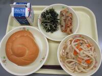 バターロール 牛乳 ちくわの新緑揚げ きつねうどん 礒香和え