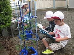 葉を見ながら、アサガオの葉の形や茎(つる)の違いなどに気づいている子がいました既習学習が生かされていますね