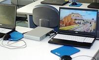 パソコン室のノートパソコン タブレット型のパソコン 保管庫に収納しています