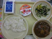 ごはん ぎゅうにゅう チキンカレー こまつなのソテー アセロラゼリー