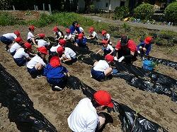 とてもよく晴れたので、2年生が畑に野菜苗を植えました