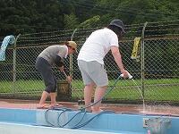 急遽お手伝いをお願いしたPTA役員2名のお力添えもあり、無事に終了することができました。とてもきれいなプールになりましたよ